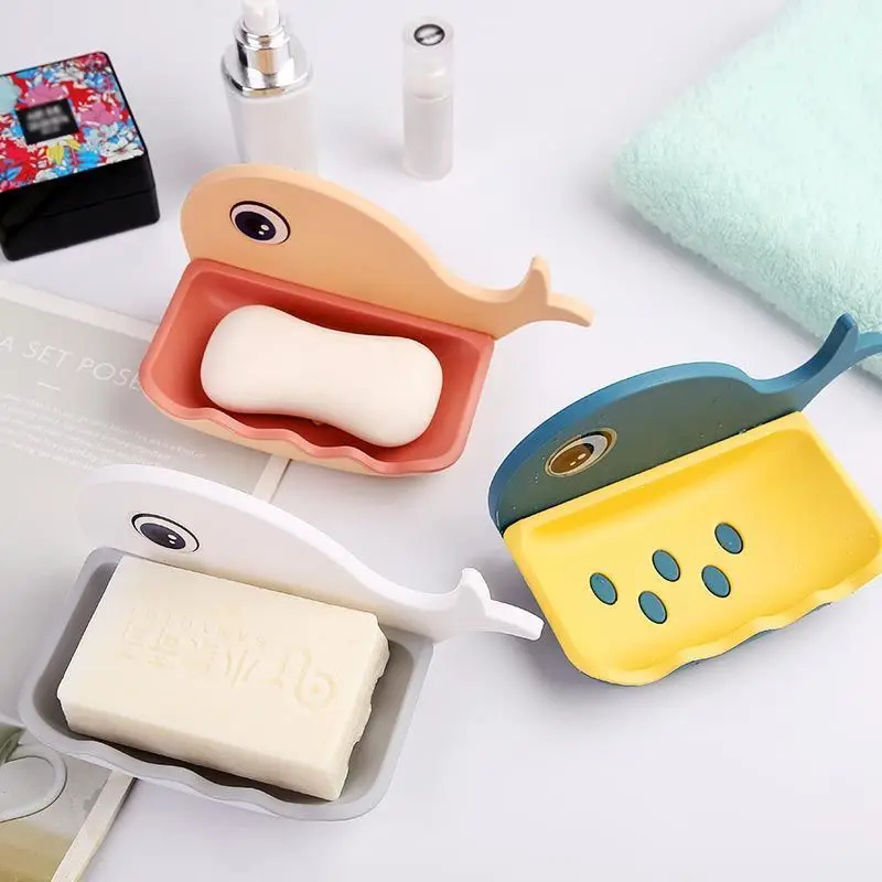1PCS Wall Mounted Soap Dish for Bathroom Shower Portable Whale Soap Holder Plastic Sponge Tray for Kitchen Bathroom Accessories