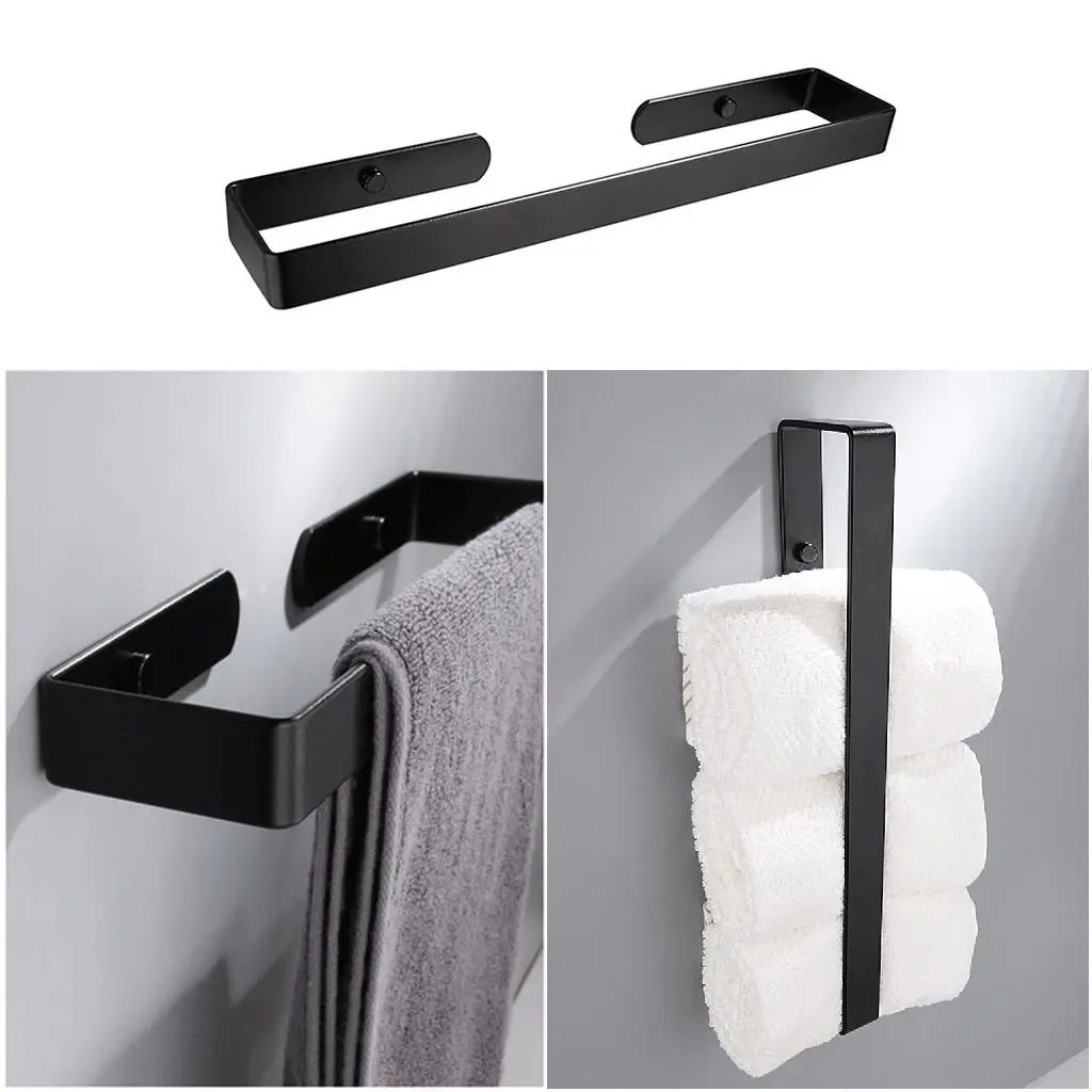 Black Bathroom Towel Holder Rail Bar Shoe Rack Wall Mounted Aluminum Kitchen Hand Towel Rack Storage Shelf Home Organizer